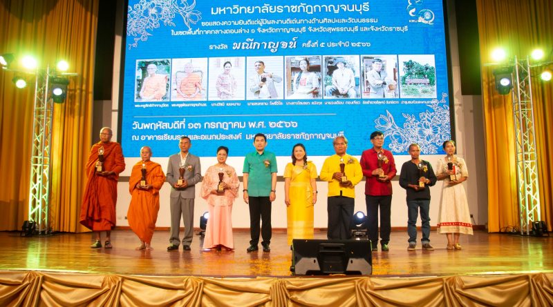 วันที่ 13 กรกฎาคม 2566 ที่อาคารเรียนรวมและอเนกประสงค์มหาวิทยาลัยราชภัฏกาญจนบุรี ผศ.ดร.พจนีย์ สุขชาวนา อธิการบดีมหาวิทยาลัยราชภัฏกาญจนบุรี ได้มาร่วมพิธีและร่วมแสดงความยินดีกับผู้ที่ได้รับรางวัลมณีกาญจน์