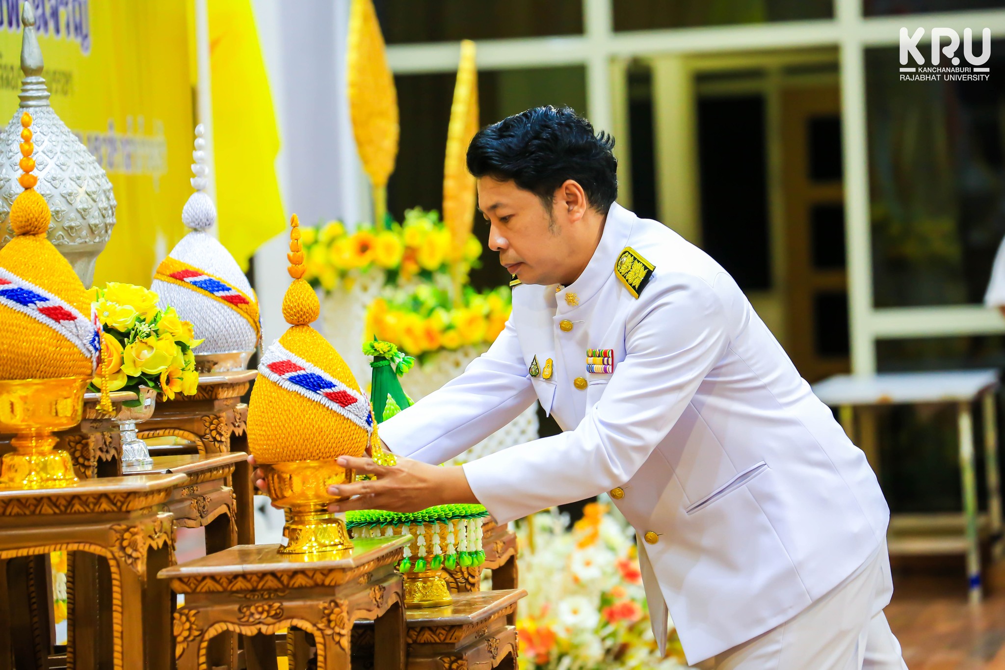 ในวันพุธที่ 26 กรกฎาคม พ.ศ. 2566 เวลา 09.00 น. ที่ อาคารเรียนรวมและอเนกประสงค์ มหาวิทยาลัยราชภัฏกาญจนบุรี ผศ.ดร.พจนีย์ สุขชาวนา อธิการบดีมหาวิทยาลัยราชภัฏกาญจนบุรี นำคณะผู้บริหาร อาจารย์ บุคลากร นักศึกษา และนักเรียน เข้าร่วมในพิธีเจริญพระพุทธมนต์ถวายราชกุศล และพิธีถวายเครื่องราชสักการะวางพานพุ่ม และถวายพระพรชัยมงคลแด่พระบาทสมเด็จพระเจ้าอยู่หัว พระบาทสมเด็จพระปรเมนทรรามาธิบดีศรีสินทรมหาวชิราลงกรณ พระวชิรเกล้าเจ้าอยู่หัว เนื่องในโอกาสวันเฉลิมพระชนมพรรษา 71 พรรษา 28 กรกฎาคม 2566