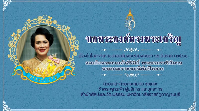 สำนักศิลปะและวัฒนธรรม มหาวิทยาลัยราชภัฏกาญจนบุรี ขอเชิญชวนบุคลากร นักศึกษามหาวิทยาลัยราชภัฏกาญจนบุรี และประชาชนทั่วไป ร่วมลงนามถวายพระพรสมเด็จพระนางเจ้าสิริกิติ์ พระบรมราชินีนาถ พระบรมราชชนนีพันปีหลวง เนื่องในโอกาสมหามงคลเฉลิมพระชนมพรรษา 12 สิงหาคม 2566