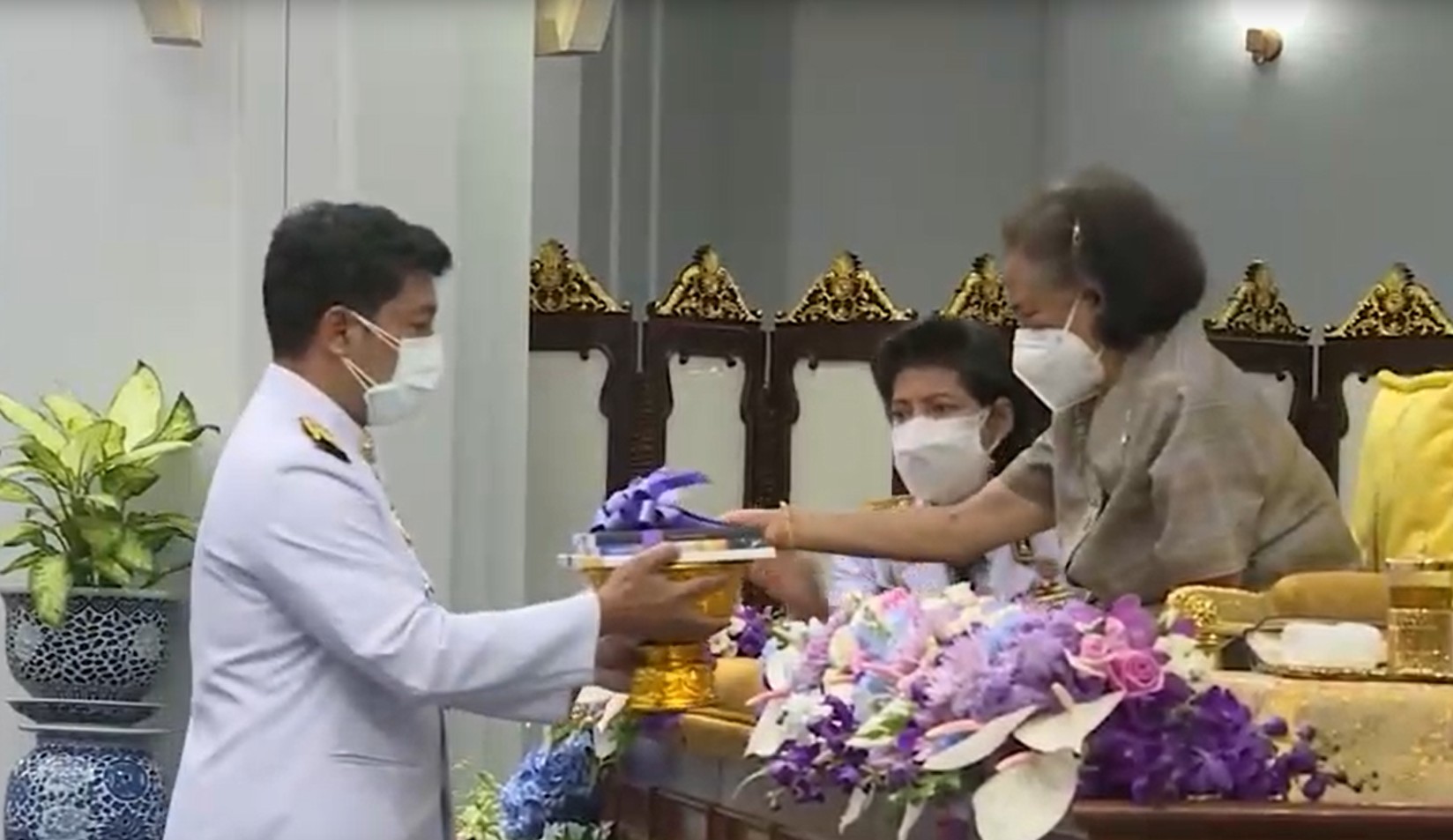 ดร.สายชล เทียนงาม ผู้อำนวยการสำนักส่งเสริมวิชาการและงานทะเบียน ทูลเกล้าฯถวายตะกร้าไม้ไผ่สาน