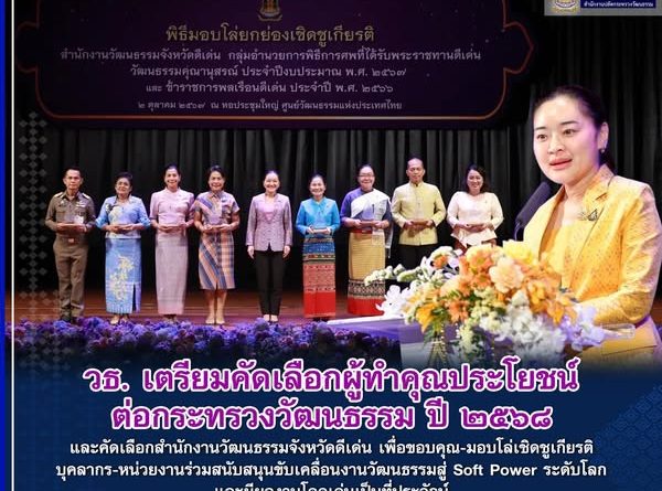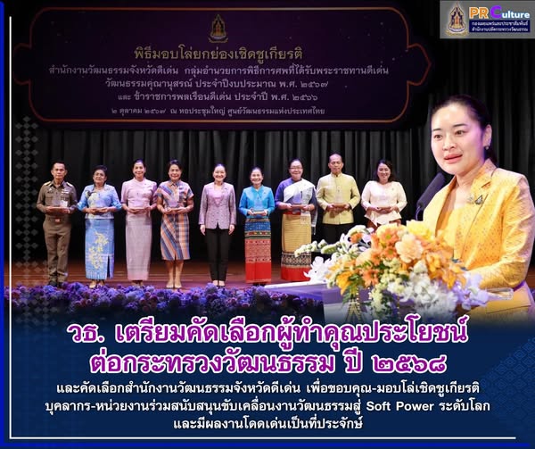 การคัดเลือกผู้ทำคุณประโยชน์ต่อกระทรวงวัฒนธรรม ประจำปีงบประมาณ ๒๕๖๘