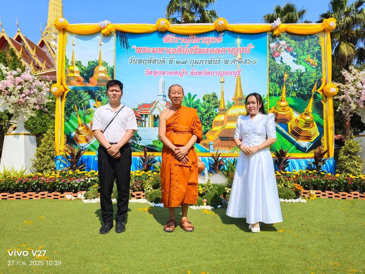 วันที่ ๒๗ กุมภาพันธ์ ๒๕๖๘ ดร.เศกสิทธิ์ ปักษี ผู้อำนวยการสำนักศิลปะและวัฒนธรรม มหาวิทยาลัยราชภัฏกาญจนบุรี มอบหมายให้ อาจารย์ชญานุช เซี่ยงคิ้ว รองผู้อำนวยการสำนักศิลปะและวัฒนธรรม มหาวิทยาลัยราชภัฏกาญจนบุรี ได้เข้าร่วมพิธีวางศิลาฤกษ์พระมหาธาตุเจดียศรีมงคลกาญจน์และพิธีบำเพ็ญกุศลครบรอบวันมรณภาพ พระกาญจนวัตรวิบูล (สอนอินฺทสโร) ครบรอบปีที่ ๕๙ พระมงคลสิทธิคุณ (ลำใย ปิยวณฺโณ) ครบรองปีที่ ๒๒ อดีตเจ้าอาวาสวัดทุ่งลาดหญ้าตลอดถึงบูรพาจารย์และผู้ทำอุปการะคุณทุกรูป/คน ณ วัดทุ่งลาดหญ้า ตำบลลาดหญ้า อำเภอเมืองกาญจนบุรี จังหวัดกาญจนบุรี